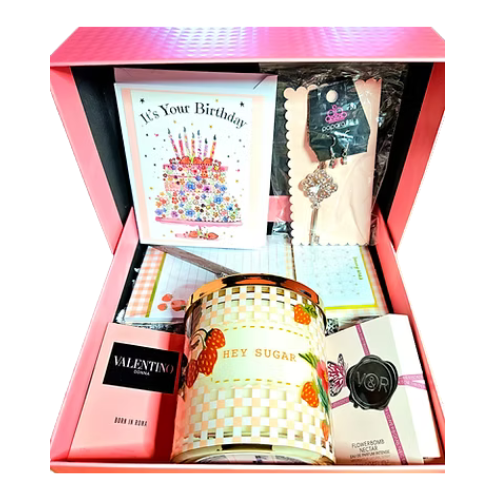 Una combinación mixta de joyas, perfumes, blocs de notas, tarjetas, lociones y velas para esa persona especial.